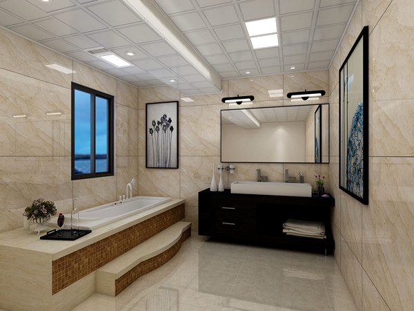 衛(wèi)浴吊頂: 布局以“簡(jiǎn)約、舒適、生活化”為宗旨,有心的是在臺(tái)階部分同樣與吊頂?shù)腻e(cuò)層形成了一個(gè)呼應(yīng),上方的燈還可以滿足我們臺(tái)階部分的照明需求,豐富了空間故事感。